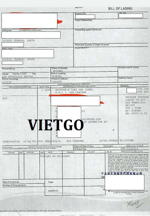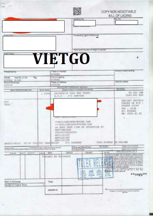 Hình ảnh vận đơn nhập khẩu do vị khách hàng cung cấp