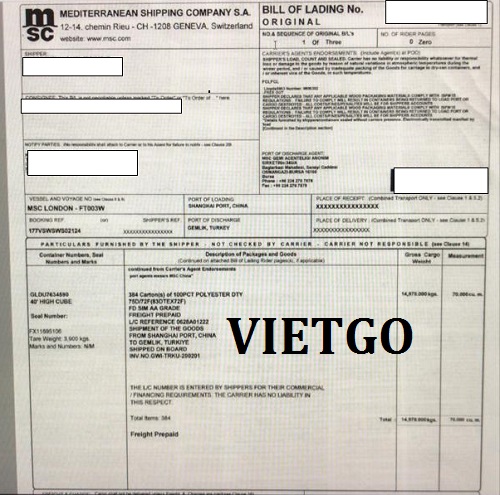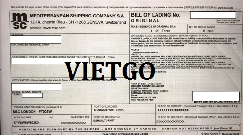 Hình ảnh vận đơn nhập khẩu do vị khách hàng cung cấp