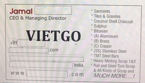 Ông Jamal đang dùng chủ yếu là email và Whatsapp để giao dịch và đàm phán. Vị khách hàng đến từ Ấn Độ hy vọng có thể sớm nhận được liên hệ từ phía Quý nhà cung cấp của VIETGO để tiến hành đàm phán, trao đổi thêm.