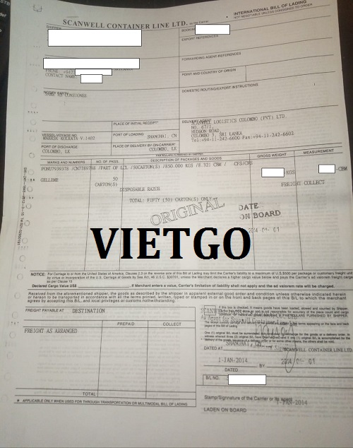 Hình ảnh bản vận đơn nhập khẩu sản phẩm Dao Cạo Râu từ Trung Quốc của vị khách hàng chia sẻ cùng VietGo