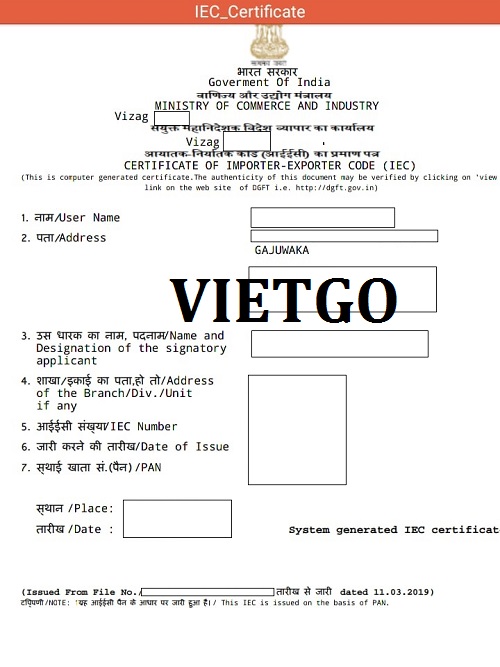Hình ảnh giấy phép nhập khẩu của công ty khách hàng