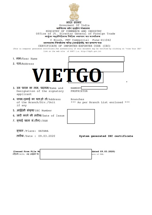 Hình ảnh giấy phép kinh doanh của công ty vị khách hàng