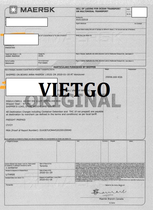 Phương thức báo giá: CIF tại cảng Vancouver, Canada