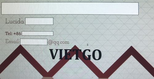 “Đây là Lucida từ Trung Quốc. Tôi là đại diện của công ty thực phẩm ██████████. Công ty tập trung vào việc tiếp thị các sản phẩm thực phẩm và đồ uống nhập khẩu trong nước. Với các kênh bán hàng lâu năm ở Trung Quốc, công ty hiểu rất rõ về thị trường sản phẩm tiêu dùng và kinh nghiệm phát triển định vị trong việc phát triển và duy trì thị trường hàng tiêu dùng chất lượng cao. Chúng tôi là nhà sản xuất hải sản cho thương hiệu OEM tại Trung Quốc”. Gần đây, bà có liên hệ với VIETGO cho đơn hàng nhập khẩu số lượng lớn Cá Hồi từ Việt Nam. Qua cuộc trò chuyện, bà nhấn mạnh với mong muốn đây sẽ là một đơn hàng lâu dài, do vậy bà muốn tìm được nhà cung cấp phù hợp đủ đáp ứng được các yêu cầu bà đưa ra. VIETGO nhận thấy đây là một vị khách hàng tiềm năng và cực kỳ nghiệm túc, vậy nên VIETGO xin gửi tới Quý nhà cung cấp thông tin liên hệ của vị khách hàng, kính mong Quý nhà cung cấp hãy sớm liên hệ với bà cho đơn hàng này.