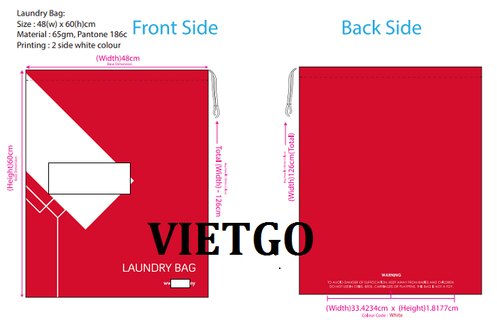 Thiết kế: Túi màu đỏ với với dây rút PP, in nhiệt 2 màu như hình minh họa ở cả 2 mặt