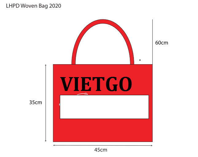 Thiết kế: Túi màu đỏ, in nhiệt 1 màu như hình minh họa ở cả 1 mặt