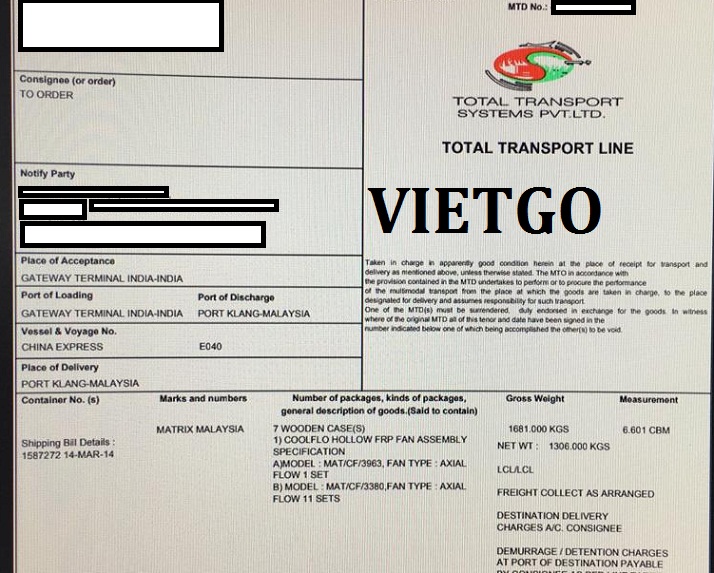 Hình ảnh vận đơn nhập khẩu do vị khách hàng cung cấp