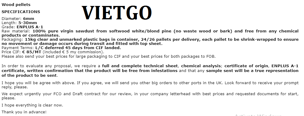 VIETGO đã nhận được thông tin từ ông Dragan – đại diện một doanh nghiệp tại Anh về nhu cầu nhập khẩu viên nén mùn cưa. Thông qua VIETGO, vị khách hàng rất mong có thể kết nối tới các nhà cung cấp tiềm năng, có thể hợp tác lâu dài.
