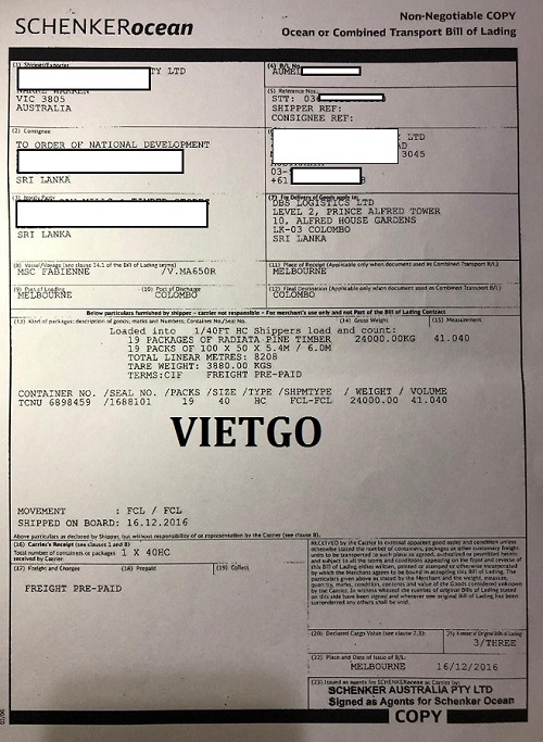 Hình ảnh vận đơn do khách hàng cung cấp.