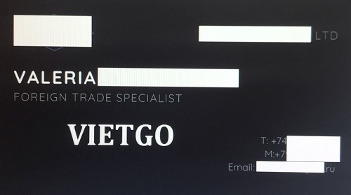 Đại diện cho ██████████, bà Valeria trao đổi với VIETGO về đơn hàng với thái độ chuyên nghiệp và thanh lịch. Bà chủ động gửi tất cả yêu cầu về sản phẩm một cách rõ rang và chi tiết. Khi được giới thiệu về việc nhà cung đến từ Việt Nam thì bà tỏ ra rất vui vẻ vì với bà Việt Nam là thị trường nhập khẩu tốt, rất mong quý nhà cung có thể đáp ứng được các yêu cầu của bà và hợp tác lâu dài.