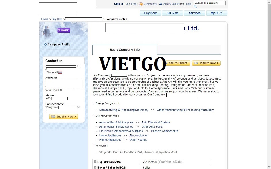 Bà Somporn đến từ công ty ██████████. Ltd thành lập năm 1999 và có trụ sở chính tại Huaykwang, Bangkok, Thái Lan. Công ty có 20 năm kinh nghiệm kinh doanh thương mại và chuyên môn cung cấp hiệu quả cho khách hàng chất lượng sản phẩm và dịch vụ tốt nhất. Công ty sản xuất nhiều loại mặt hàng đa dạng, bao gồm Vòng bi các loại máy móc, các bộ phận của điều hòa, tủ lạnh, bình giữ nhiệt, thiết bị giảm xóc, LED, khuôn ép cho các bộ phận và thân máy gia dụng…