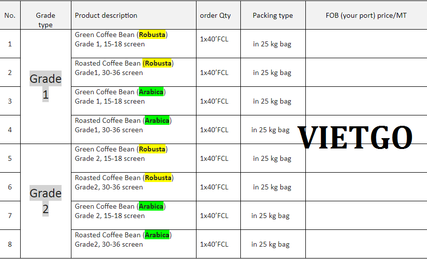 Tên sản phẩm: Cà Phê Robusta và Arabica