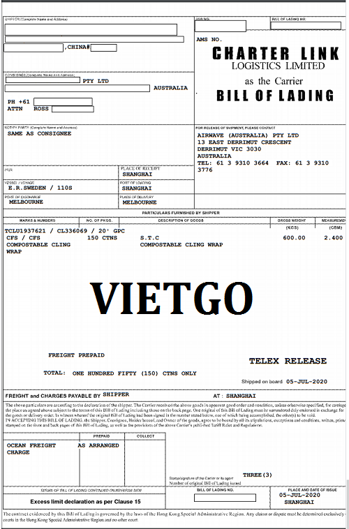 Để củng cố thêm lòng tin cho Quý vị, ông Ross đã gửi đến Quý vị một vận đơn (Bill of Lading) của một chuyến hàng nhập khẩu mà Công ty ông đã nhập khẩu thành công từ Trung Quốc.