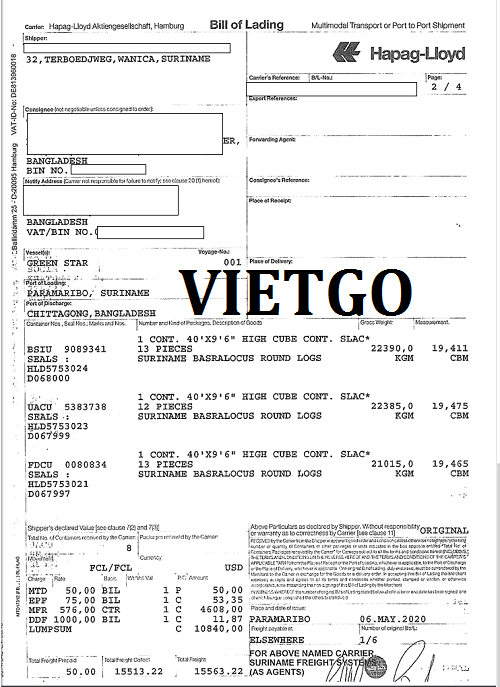 Để củng cố thêm lòng tin cho Quý vị, ông Habib đã gửi đến Quý vị một vận đơn (Bill of Lading) của một chuyến hàng nhập khẩu gỗ Basralocus tròn mà Công ty ông đã nhập khẩu thành công từ Suriname.