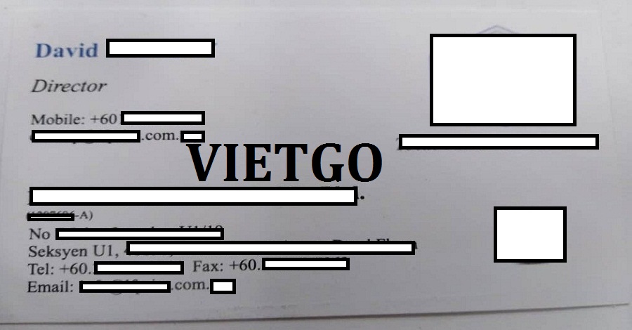 VIETGO xin gửi tới quý nhà cung cấp thông tin đơn hàng nhập khẩu của ông David.