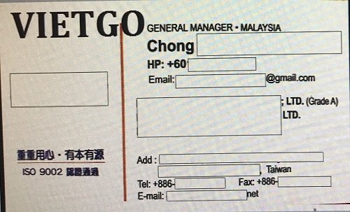 Ông Chong đang dùng chủ yếu là email và Whatsapp để giao dịch và đàm phán. Vị khách hàng đến từ Malaysia hy vọng có thể sớm nhận được liên hệ từ phía Quý nhà cung cấp của VIETGO để tiến hành đàm phán, trao đổi thêm.