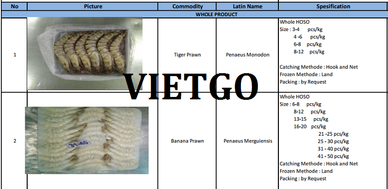 Mời quý nhà cung cấp nghiên cứu đơn hàng nhập khẩu mặt hàng tôm của ông Zuber