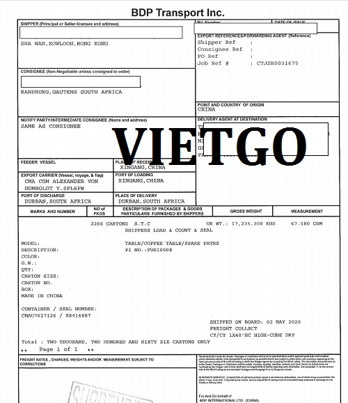 Hình ảnh vận đơn nhập khẩu do vị khách hàng cung cấp