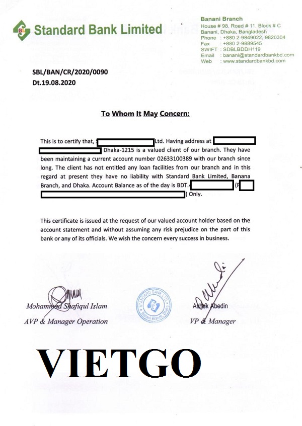 Hình ảnh chứng minh tài chính (POF) công ty vị khách hàng
