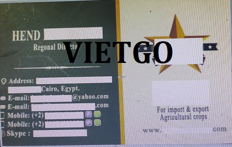 Mọi chi tiết cụ thể cũng như để trao đổi sâu thêm về đơn hàng cung cho mặt hàng Hạt điều ở trên, Quý vị vui lòng liên hệ theo duy nhất địa chỉ ghi dưới đây để sớm nhận được hồi âm từ phía vị khách hàng đến từ Ai Cập này.