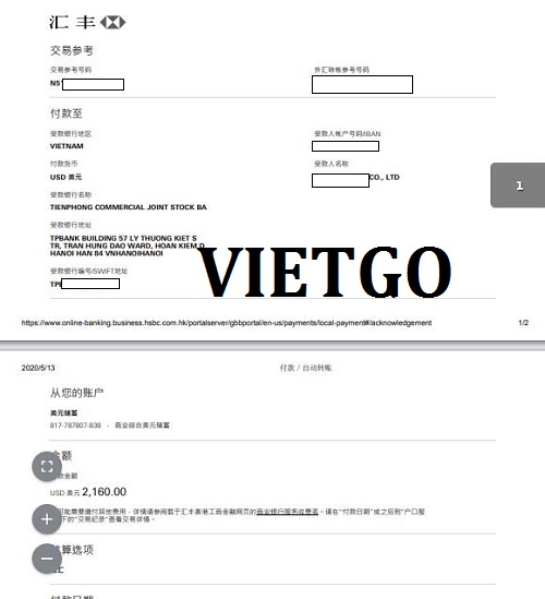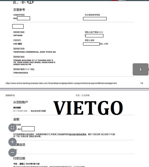 Hình ảnh thanh toán cho các lô hàng khẩu trang ông Raed nhập từ Việt Nam
