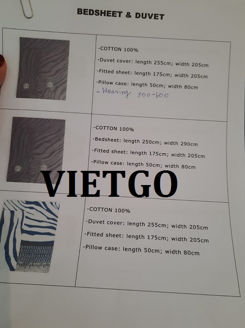 VIETGO đã nhận được thông tin đơn hàng từ chị Kay – đại diện doanh nghiệp đến từ Thái Lan đang tìm kiếm nguồn cung ứng cho mặt hàng chăn ga gối đệm