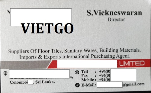 ██████████ là một trong những đơn vị hàng đầu trong lĩnh vực sản xuất và phân phối các thiết bị vệ sinh, đồ dùng phụ kiện trong nhà tắm như bồn cầu, chậu rửa, bồn tắm,... Với nhiều năm kinh nghiệm cũng như sự chuyên nghiệp trong sản xuất và trong các dịch vụ khách hàng đã giúp cho công ty của ông Alex ngày càng phát triển với những sản phẩm được tin dùng rộng rãi trong các hộ gia đình cũng như các công trình kiến trúc lớn. Chia sẻ về đơn hàng lần này, ông Alex cho biết việc nhập khẩu và kinh doanh các sản phẩm nông sản là một lĩnh vực mà công ty ông quan tâm và đã tập trung phát triển trong một vài năm trở lại đây. Việt Nam cũng là một thị trường quen thuộc đối với các doanh nghiệp đến từ Sri Lanka và Bangladesh. Ông Alex bày tỏ hy vọng sẽ sớm nhận được báo giá cũng như kết nối thành công cùng nhà cung cấp phù hợp trong một mối quan hệ kinh doanh hợp tác lâu dài.