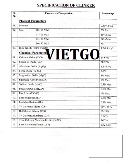 Mới đây, bà Susi có liên hệ cho VIETGO với đơn hàng lớn nhập khẩu Clinker mỗi tháng từ Việt Nam. Bà cho biết, trụ sở công ty tại Canada có nhận được một yêu cầu của một vị khách hàng đại diện cho một nhà máy tại Bangladesh, và công ty đã cử bà làm đại diện bên mua để đứng ra tìm nhà cung cấp CLinker lớn có thể cung cấp số lượng lớn Clinker thường xuyên, bà cũng đảm bảo đây sẽ là đơn hàng thường xuyên, và bà rất kỳ vọng vào chất lượng Clinker tại Việt Nam, và bà nhận thấy đây sẽ là một cơ hội hợp tác lâu dài giữa hai doanh nghiệp.