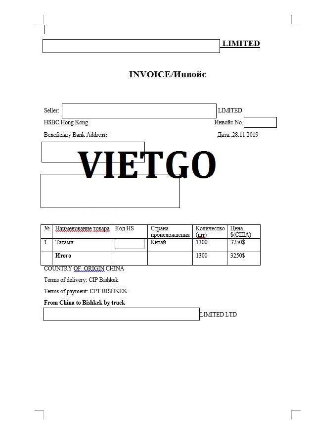 Ông Kudrat hiện đang là đại diện của ██████████ có trụ sở tại Kyrgyzstan. Được biết đây là công ty thương mại chuyên tìm kiếm và cung cấp các sản phẩm theo nhu cầu của khách hàng. Trước đây, vị khách hàng chủ yếu nhập các sản phẩm gia dụng từ Trung Quốc và Nga. Tuy nhiên do ảnh hưởng của dịch bệnh cũng như có nhu cầu muốn thay đổi thị trường nhập khẩu, vị khách hàng đã liên hệ với Vietgo với mong muốn tìm được nhà cung cấp chất lượng và giá cả phải chăng để có thể hợp tác lâu dài. Vị khách hàng cũng chia sẻ với chúng tôi hóa đơn nhập khẩu mặt hàng chiếu Tatami từ Trung Quốc để minh chứng cho kinh nghiệm giao thương của mình.