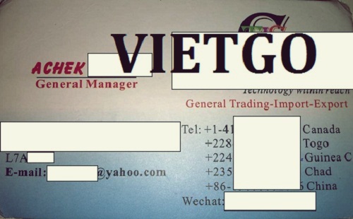 Ông Achek ██████████ là vị khách hàng đến từ Guinea thuộc công ty ██████████. Mới đây, ông Achek có liên hệ với VIETGO đơn hàng nhập khẩu Cá rô phi đông lạnh nguyên con từ Việt Nam, ông cho biết thêm ông hiện tại đang có một số hợp đồng thương mại từ các vị khách hàng tại Mozambique muốn mua số lượng lớn mặt hàng thủy hải sản, do vậy ông đã không ngần ngại liên hệ cho công ty VIETGO, hy vọng nhận được sự hỗ trợ từ VIETGO giúp kết nối ông với các nhà cung cấp tiềm năng tại Việt Nam.