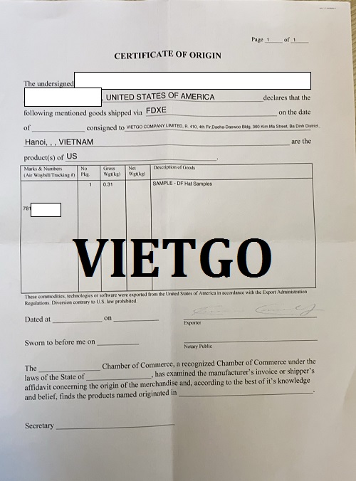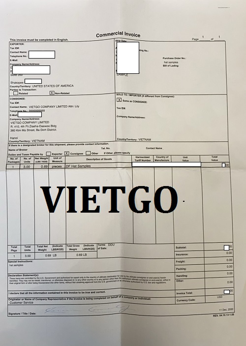 Hình ảnh giấy tờ vị khách hàng vận chuyển sản phẩm mẫu cho VIETGO