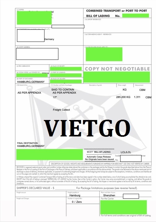 Chia sẻ thêm với VIETGO, cô Silja cho biết trước đây công ty cô đã từng nhập khẩu rất nhiều các sản phẩm may mặc từ nhiều đối tác khác nhau trên thế giới, một trong đó có thể kể đến những đại lý tại Bồ Đào Nha. Chính vì thế, để minh chứng cho kinh nghiệm nhập khẩu hàng hóa dày dặn của công ty, cô Silja có gửi tới chúng tôi bản vận đơn nhập khẩu áo Hoodie từ Shenzhen, Trung Quốc vào ngày 18/06/2020: