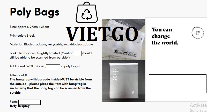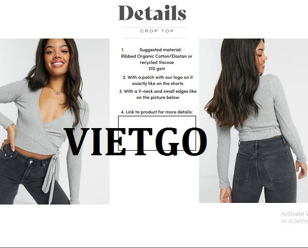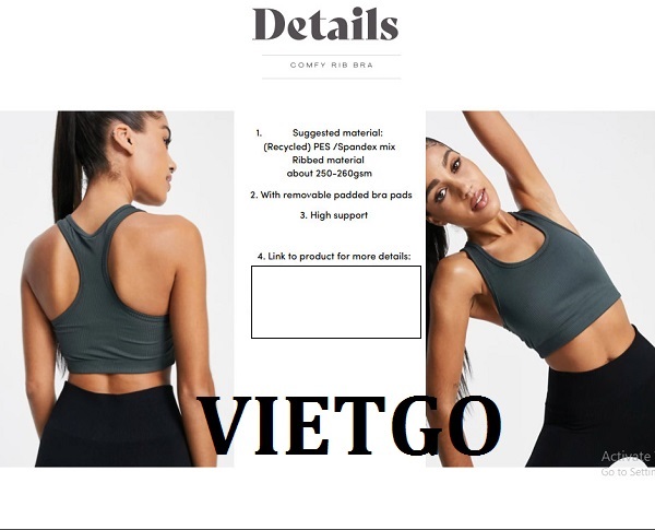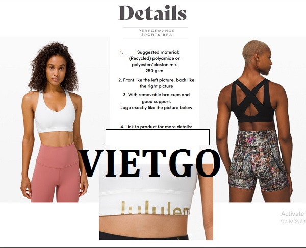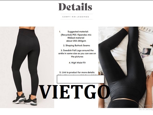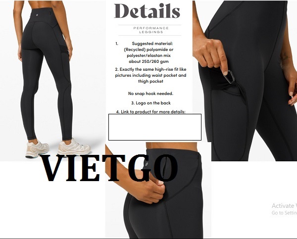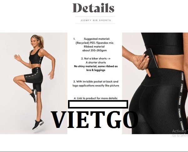 VIETGO xin gửi tới Quý vị thông tin đơn hàng từ cô Silja– vị khách hàng đến từ Đức với nhu cầu tìm kiếm nguồn cung ứng cho các sản phẩm đồ thể thao cho lần nhập thử đầu tiên. Cô Silja rất mong sẽ tìm được đối tác có thể hợp tác lâu dài.