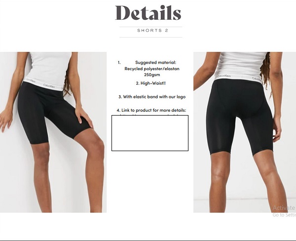 Thiết kế: Vị khách hàng đang cần tìm những mẫu sản phẩm thể thao như Bra, Leggings, áo thể thao (Tops), quần đùi (Shorts), áo thể thao dài tay.