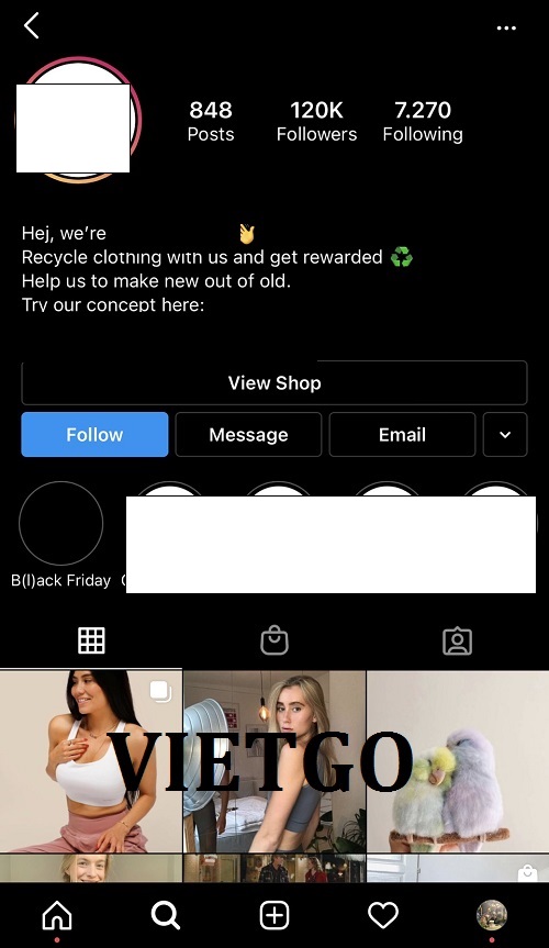 Hình ảnh tải khoản Instagram của công ty vị khách hàng