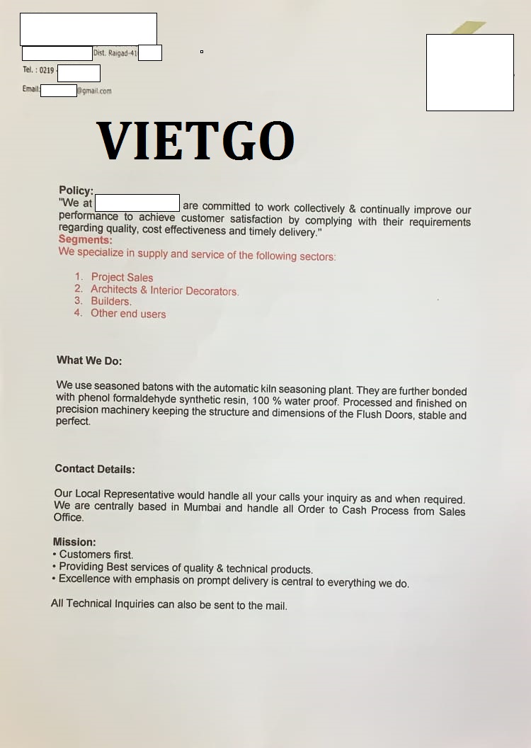 VIETGO đánh giá cao đây là một vị khách hàng vô cùng nhiệt tình, nghiêm túc và có thiện chí hợp tác với các doanh nghiệp Việt Nam. Mong Quý nhà cung cấp sớm liên hệ cho Ông Shailesh để không bỏ lỡ cơ hội giao thương tiềm năng này.