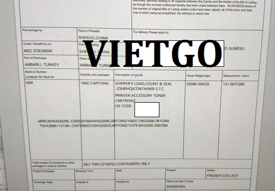 Do hoạt động chủ yếu trong lĩnh vực xuất nhập khẩu nên vị khách hàng thể hiện ông rất có kinh nghiệm trong lĩnh vực này, để chứng tỏ kinh nghiệm của mình ông đã cung cấp tới chúng tôi vận đơn nhập khẩu sản phẩm hộp mực – phụ kiện máy in từ thị trường Trung Quốc.