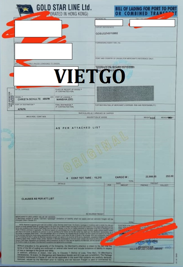 Dưới đây là hình ảnh một vận đơn đường biển (Bill of Lading) của một chuyến hàng nhập khẩu thành công mặt hàng Pallet nhựa từ Nigeria.