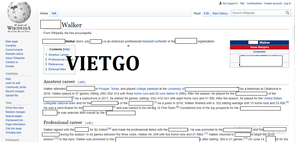██████████ Walker chơi bóng chày tại Đại học ██████████. Khi còn là sinh viên năm nhất tại Oklahoma vào năm 2016, Walker đã chơi 57 trận. Sau mùa giải, anh ấy chơi cho ██████████ của ██████████ và tiếp đó, anh chơi cho đội tuyển quốc gia đại học Hoa Kỳ và cho ██████████ của ██████████. Anh vinh dự lọt vào vòng bán kết của Giải thưởng Golden Spikes, được xướng tên trong Đội hạng Nhất và được coi là một trong những triển vọng hàng đầu cho giải bóng chày Major League 2010, anh đã được chọn đứng thứ 46 chung cuộc bởi ██████████.