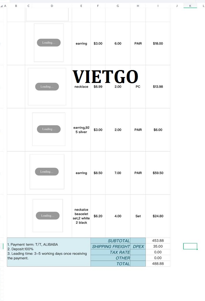 Hình ảnh một số hóa đơn nhập đồ trang sức từ Trung Quốc của vợ chồng anh Hao Vu
