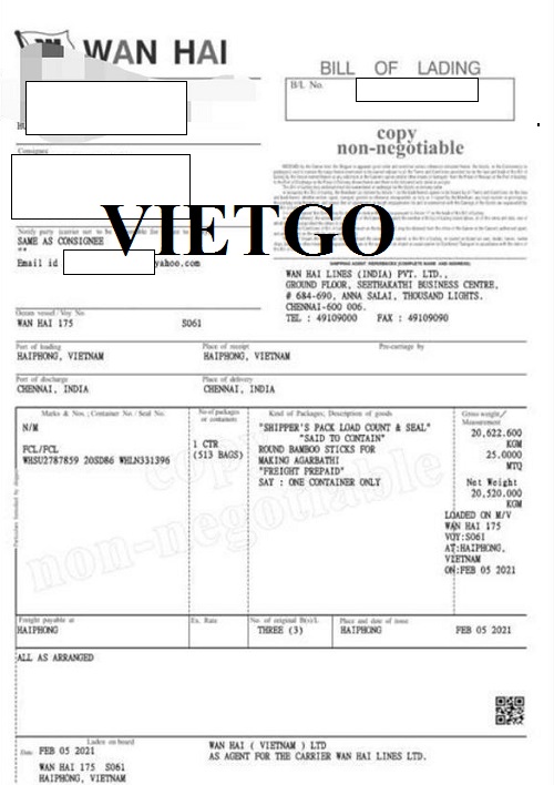 Dưới đây là hình ảnh một vận đơn đường biển (Bill of Lading) của một chuyến hàng nhập khẩu thành công chân hương từ Việt Nam.