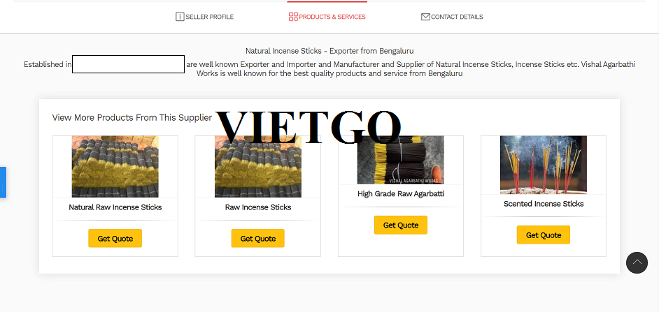 ██████████ là một trong những nhà sản xuất hàng đầu về nhang không mùi cao cấp làm thủ công bằng tay và nhang thô làm bằng máy. Công ty đã kinh doanh sản phẩm hương nhang và các sản phẩm liên quan trong hơn 51 năm. Được chính thức thành lập vào năm 1970, ██████████ được xem là một cái tên nổi tiếng trong lĩnh vực kinh doanh hương và chân hương tại Ấn Độ.
