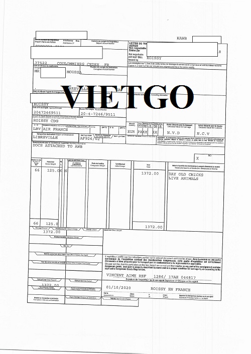 Hình ảnh bản vận đơn nhập khẩu gà giống từ Trung Quốc của công ty vị khách hàng