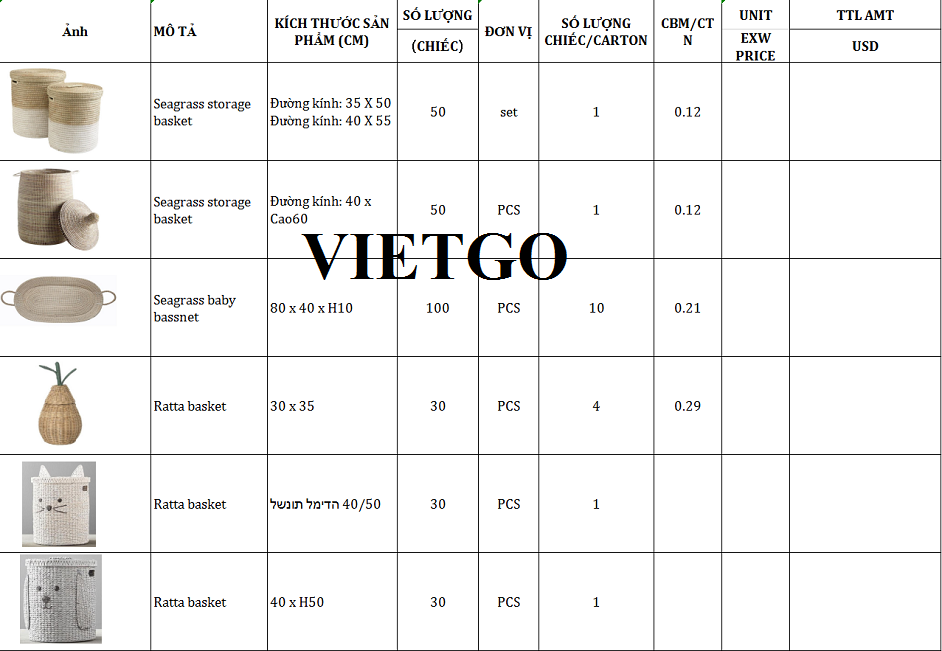 VIETGO xin gửi tới Quý nhà cung cấp thông tin đơn hàng, VIETGO kính chúc Quý vị có được một thương vụ thành công!