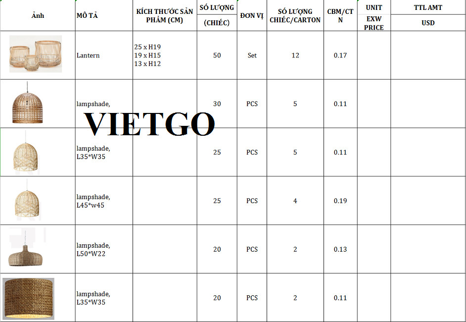 VIETGO xin gửi tới Quý nhà cung cấp thông tin về đơn hàng giỏ và lồng đèn chùm làm từ mây tre đến từ vị khách hàng tiềm năng, ông Atzmon.