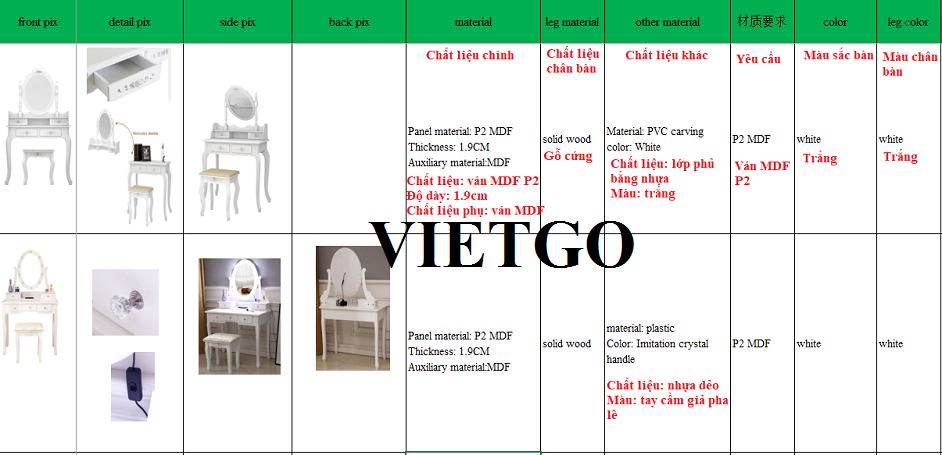 Vừa qua, VIETGO nhận được yêu cầu về đơn hàng bàn trang điểm đến từ vị khách hàng tiềm năng người Trung Quốc, anh Jimmy.