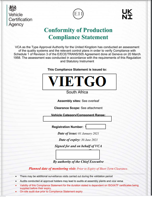 Hình ảnh giấy chứng nhận sản phẩm phù hợp quy chuẩn của công ty vị khách hàng