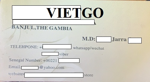 Công ty ██████████ có trụ sở tại ██████████ street ██████████, Gambia, chuyên kinh doanh, nhập khẩu các sản phẩm về gia vị, thực phẩm. Hai mặt hàng chính vị khách hàng đang kinh doanh là tinh bột sắn và tiêu đen. Ngoài ra, công ty bà còn kinh doanh thêm mặt hàng cốc giấy và đồ nhựa.