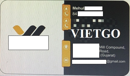 Là một thương nhân nhưng ông Mehul rất thân thiện và cởi mở, VIETGO hy vọng rằng Quý vị sẽ nhanh chóng nắm bắt đơn hàng và báo giá sớm cho ông Mehul đến cảng Mundra qua địa chỉ thông tin liên hệ dưới đây.