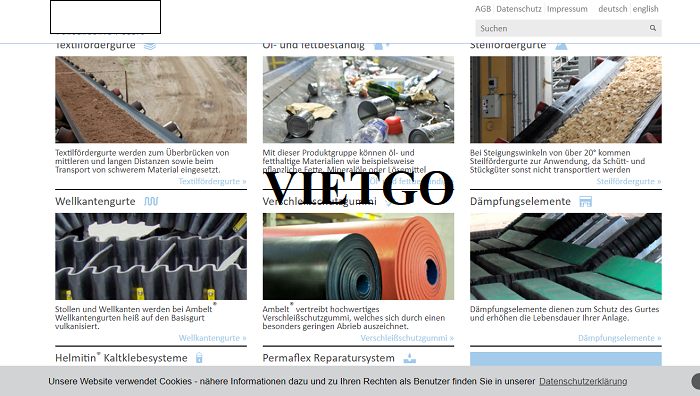 ██████████ cung cấp cho các khách hàng băng tải cao su và vật liệu bảo vệ chống mài mòn từ 4 nhà kho lớn tại Đức. Các tiêu chuẩn chất lượng cao nhất, dịch vụ có thẩm quyền và giao hàng nhanh chóng là ba nền tảng trong triết lý kinh doanh của ██████████. ██████████ còn đem lại cho khách hàng danh mục sản phẩm phong phú trong lĩnh vực công nghệ băng tải.